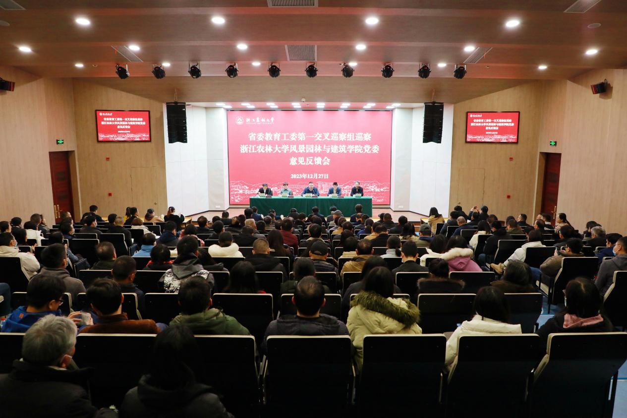 12月27日,省委教育工委交叉巡察一組向浙江農林大學風景園林與建筑學院黨委反饋交叉巡察情況。校黨委書記朱斌主持會議。省紀委省監委駐省教育廳(省委教育工委)紀檢監察組副組長王國平、省委教育工委交叉巡察一組組長陳慶紅、省委教育工委交叉巡察一組全體人員,校黨委副書記馮尚申,校黨委委員、紀委書記包松永,校黨委委員倪建均、宋厚輝,風景園林與建筑學院全體教職員工及近五年調離、退休的班子成員出席會議。