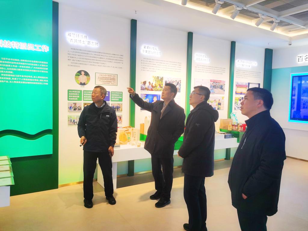 紀智一行還參觀了學校鄉村振興紀實館,聽取了吳家勝關于學校服務鄉村振興工作的介紹。