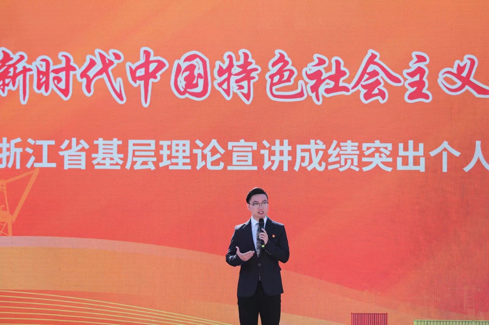 他深入基層一線,前往梅山街道梅港村生態河埠頭、白峰街道文化大禮堂、北侖凌霄社區等基層各處,將黨史基礎理論以微黨課、快板、情景劇等多種形式傳達給聽眾,力求宣講深度更深、覆蓋面更廣。由他宣講的微信黨課《堅守硬核,逆流而上》、《永葆硬核,逆流而上》等作品登上“學習強國”APP,讓更多人可以視頻學習。因他的突出宣講事跡,被中共浙江省委宣傳部評為“浙江省基層理論宣講先進個人”的榮譽稱號。