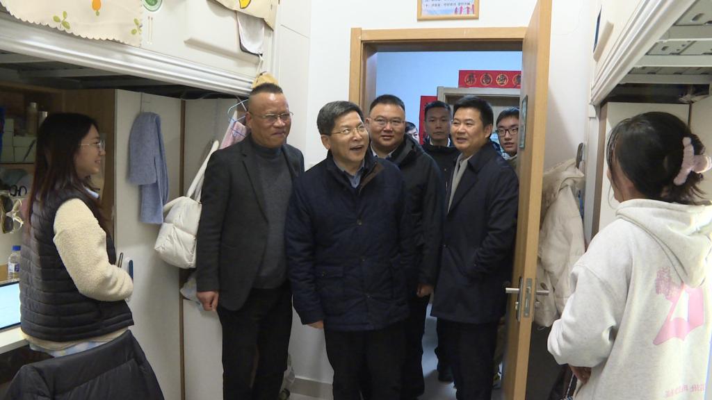 陳春雷一行深入平山公寓、B12學(xué)生公寓、鄉(xiāng)村振興紀實館、國家重點實驗室等,檢查學(xué)生宿舍及實驗室的消防安全、設(shè)施設(shè)備安全、食品安全等校園安全工作,了解學(xué)校產(chǎn)學(xué)研成果、人才培養(yǎng)工作及宿舍硬件條件等情況。他還仔細詢問校園基礎(chǔ)設(shè)施提質(zhì)工程的施工用料、空間設(shè)計等情況,聽取項目工程進展及安全措施等情況匯報。隨后,陳春雷主持召開會議,聽取匯報,提出要求。