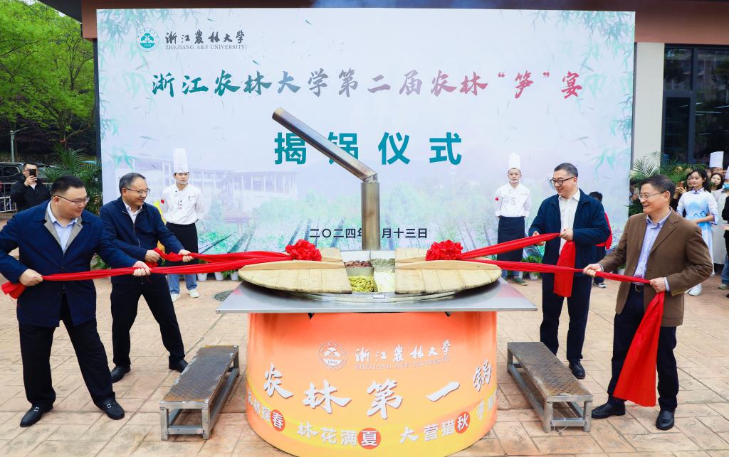4月13日,浙江農(nóng)林大學第二屆農(nóng)林“筍”宴系列活動在東湖食堂廣場拉開帷幕。校黨委書記朱斌宣布開幕。副校長胡祖吉,省商務廳行業(yè)黨委副書記單軍,省餐飲行業(yè)協(xié)會副會長、省團餐委理事長余雄飛在開幕式上致辭。