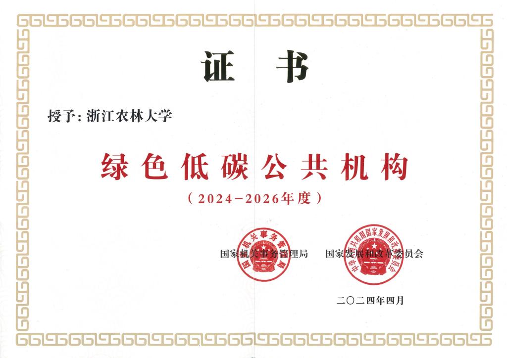 近日,國(guó)家機(jī)關(guān)事務(wù)管理局和國(guó)家發(fā)展和改革委員會(huì)聯(lián)合發(fā)布全國(guó)首批綠色低碳公共機(jī)構(gòu)名單。我校獲評(píng)2024-2026年度全國(guó)“綠色低碳公共機(jī)構(gòu)”,浙江省僅有10家單位獲此殊榮,我校是浙江省唯一入選的高校。