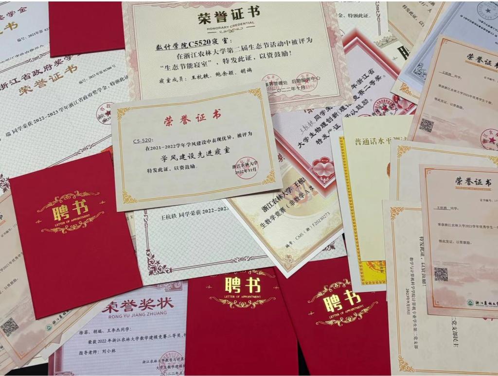 王杭軼、鮑余穎和胡端三人沒有將學習局限在課堂上、學校里。相反,她們積極進取,勇于開拓,在科研競賽中取得了優秀的成績,斬獲了全國大學生數學競賽一等獎、中國大學生程序設計競賽國家級銅獎、浙江省大學生物理創新競賽二等獎、浙江省國際“互聯網+”大學生創新創業競賽選拔賽銅獎、中國大學生計算機設計大賽浙江省二等獎、藍橋杯浙江省賽區C/C++程序設計浙江省二等獎、RoboCom機器人開發者大賽CAIP編程設計賽道浙江省賽三等獎等十余項省級以上的獎項。