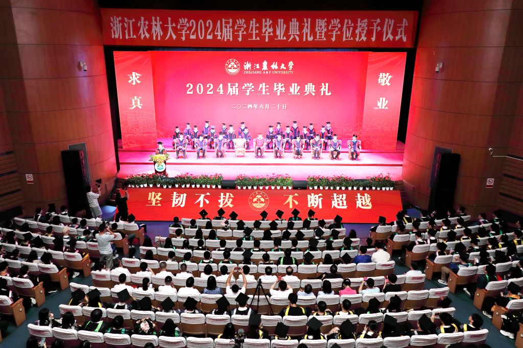 鳳凰花開,驪歌輕揚。6月20日,浙江農林大學2024屆學生畢業典禮暨學位授予儀式在東湖校區活動中心影劇院隆重舉行。