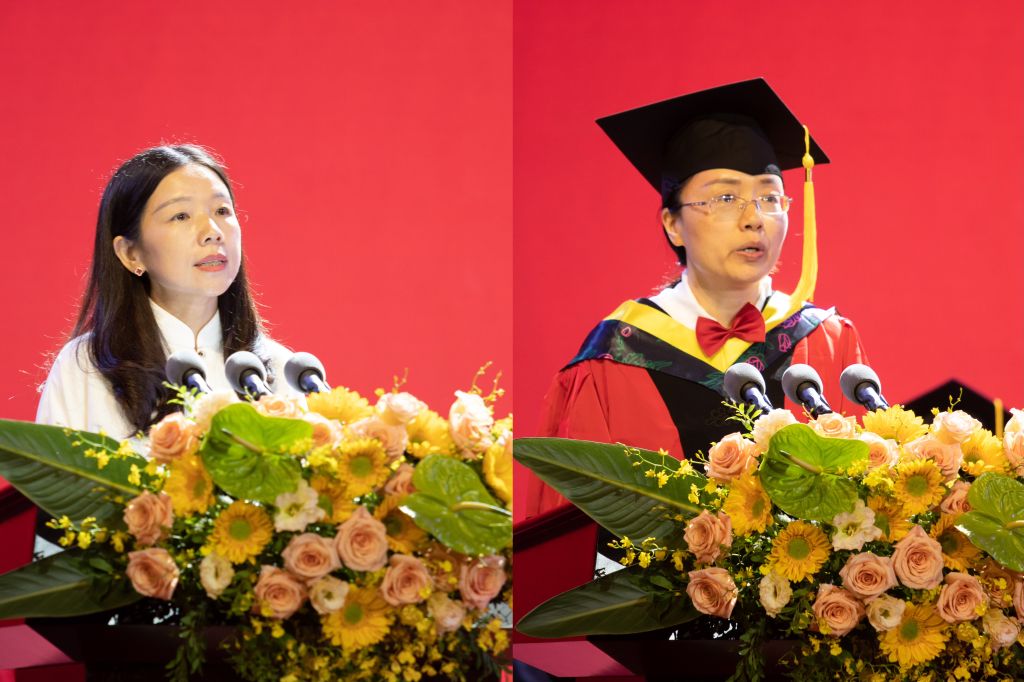 畢業生代表王皓宇,在校生代表張馨方,教師代表雷洪教授,畢業生家長代表施利霞依次發言。