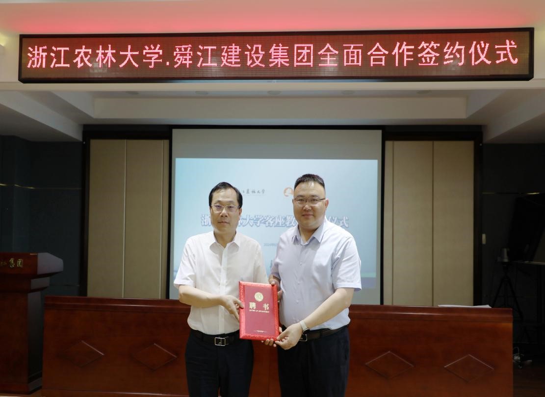 教務處、研究生院負責人分別向舜江集團授予“浙江農林大學教學實踐基地”銅牌和“浙江農林大學研究生聯合培養基地”銅牌。