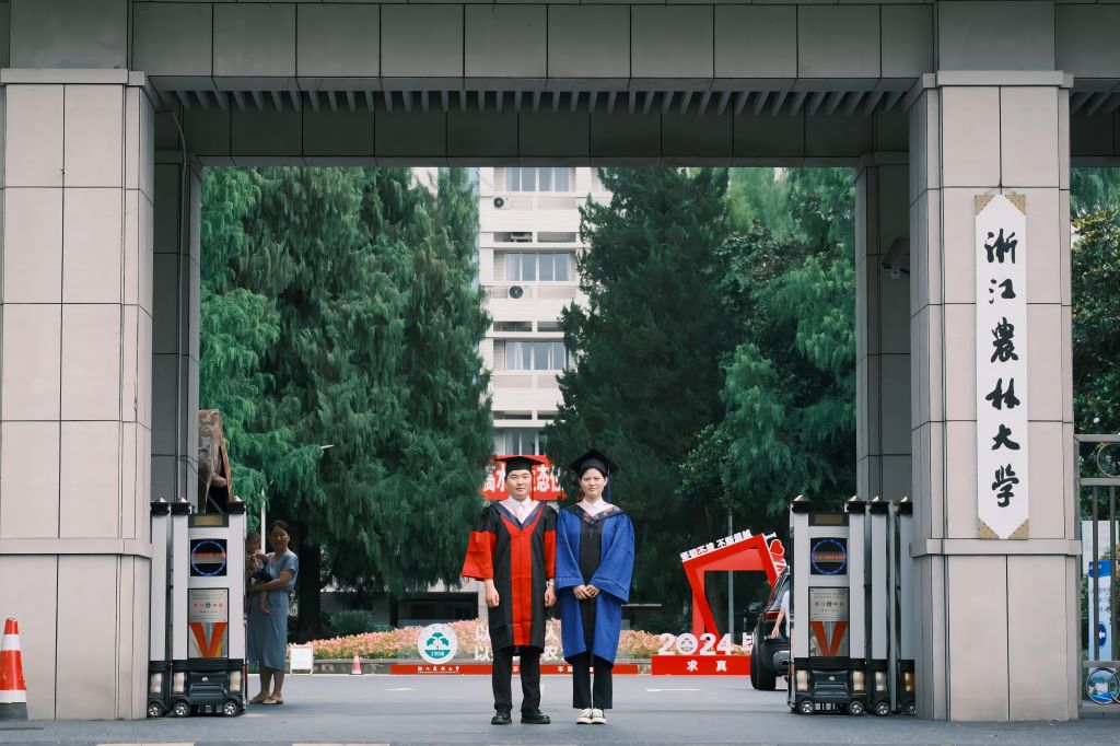 六月,繁花盛放,驕陽似火。身著學位服的兩人一同拍下了屬于他們的畢業照。離開學校的兩人也選擇留在杭州工作,繼續“以強農興農為己任”,保持初心,為“三農”工作盡一份力。
