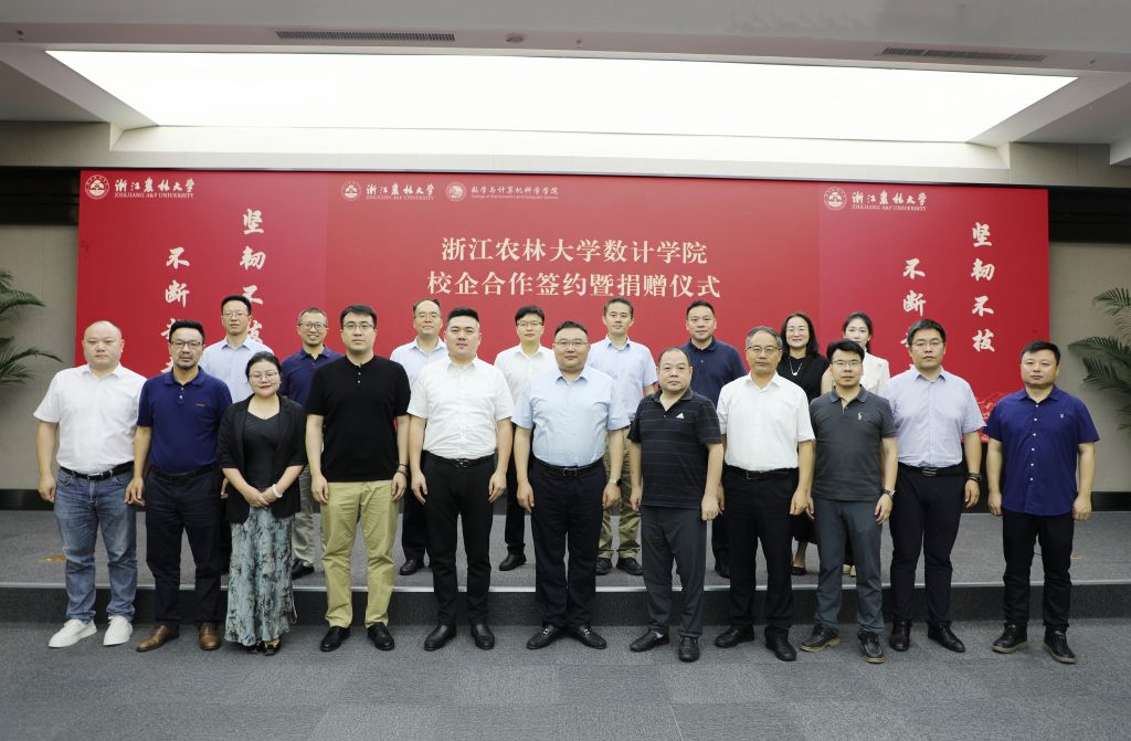 7月6日下午,浙江農林大學數學與計算機科學學院校企合作簽約暨捐贈儀式在東湖校區舉行。校黨委書記朱斌、副校長胡祖吉、科大訊飛股份有限公司浙江大區總經理王晶晶、浙江托普云農科技股份有限公司董事長陳渝陽、浙江漢商科技有限公司總經理鄭經強、浙江青蕾教育科技有限公司總經理方雪青、浙江中科曙光公司副總經理張靜波等出席儀式。