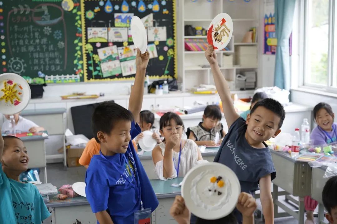 在杭州市臨安區,藝術設計學院“藝術+”彩虹課堂暑期實踐團隊的成員們走進湍口鎮小學,播種著藝術的種子。彩虹課堂由古貫今,著眼未來,從非遺扎染到古韻圖騰,從布藝手工到嘹亮紅歌,從粘土餐盤到數字博物館,浙農林大學子引領孩子們熱愛優秀傳統文化,樹立保護生態、面向未來的意識,從多個角度感受美、發現美、創造美,讓孩子們在輕松愉快的氛圍中體驗藝術的魅力。孩子們既學習到了紅色知識,又加深了愛國熱情,實現了美育和思政教育的完美融合,提升了鄉村兒童美育育人的實效。