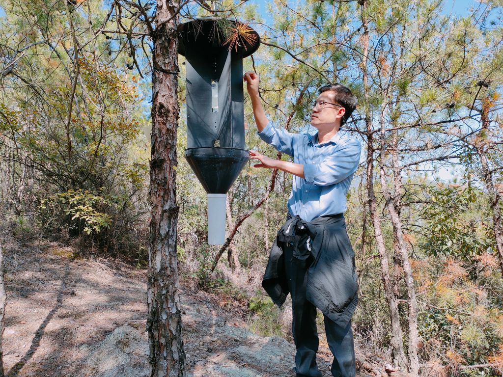 針對松材線蟲病防控藥劑匱乏,防治技術單一等問題,他們研究團隊成功研發出松墨天牛新型誘捕技術和松材線蟲病注干施藥技術,實現了媒介昆蟲的大量誘捕,以及松材線蟲的精準環保施藥,創新集成了以清理死樹為核心,以誘捕壓低蟲口密度和注干預防侵染為輔助措施的松材線蟲病綠色防控技術體系,有效遏制松材線蟲病的傳播蔓延。