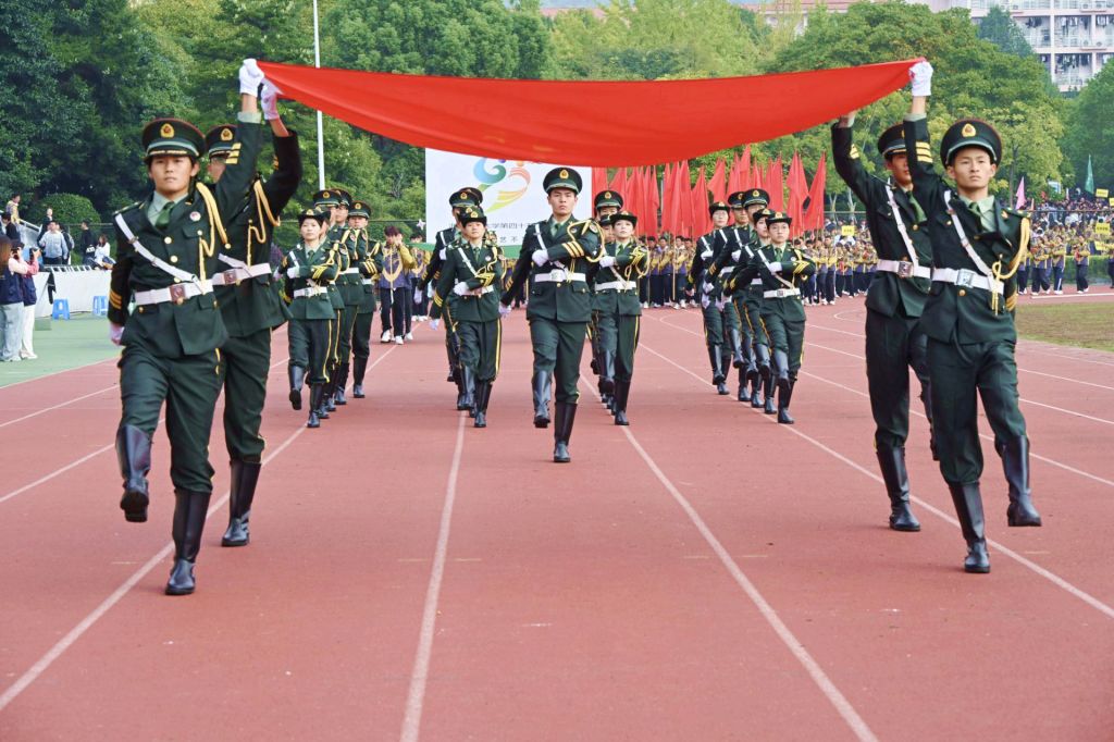 伴隨著激昂的運動員進行曲,國旗方隊、校旗會徽方隊、彩旗方隊、花束方隊、各單位運動員方陣等依次入場。