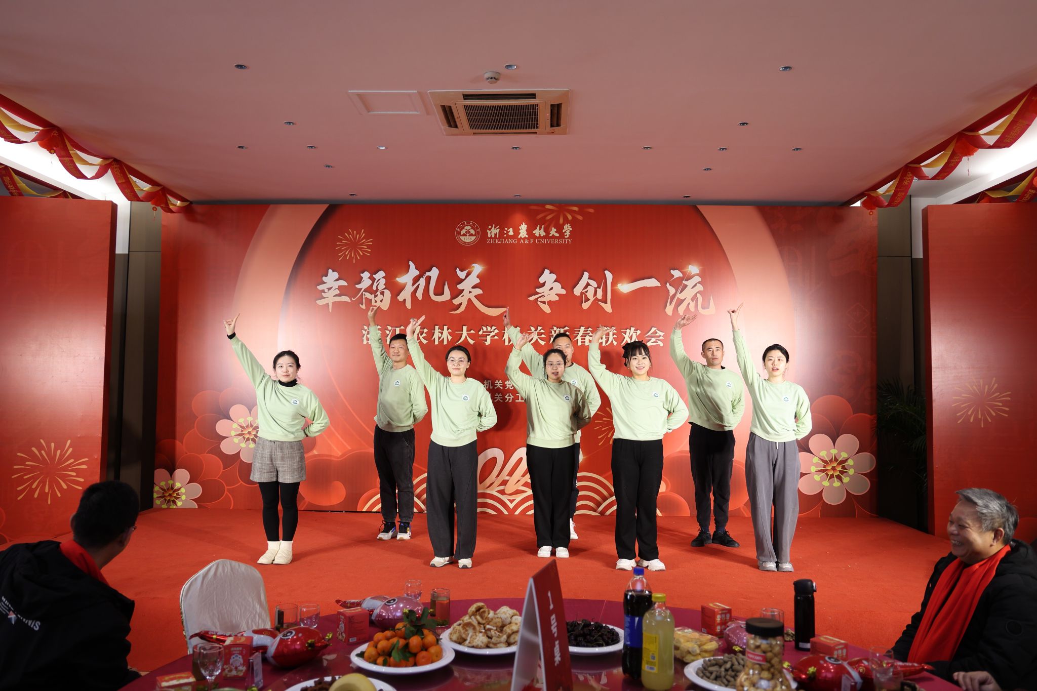 機(jī)關(guān)老師們演出的節(jié)目精彩紛呈,從多方面展現(xiàn)了浙農(nóng)林大機(jī)關(guān)人的精神風(fēng)貌。《上春山》等歌舞表演句句暖心,聲聲動(dòng)情;創(chuàng)意舞蹈《歡聚一堂》趣味十足,別出心裁;“因?yàn)槲覀兪且患胰耍嘤H相愛的一家人”熟悉的音符一響起,臺(tái)下觀眾情不自禁和臺(tái)上演員一起合唱,把聯(lián)歡會(huì)推向高潮。歲月更迭,初心依舊;新歲序開,共赴新程。大家表示,此次聯(lián)歡不僅是對(duì)過去一年辛勤工作的總結(jié),更是對(duì)未來一年美好憧憬的展望。大家在新的征程中必將繼續(xù)努力,再創(chuàng)佳績(jī)。