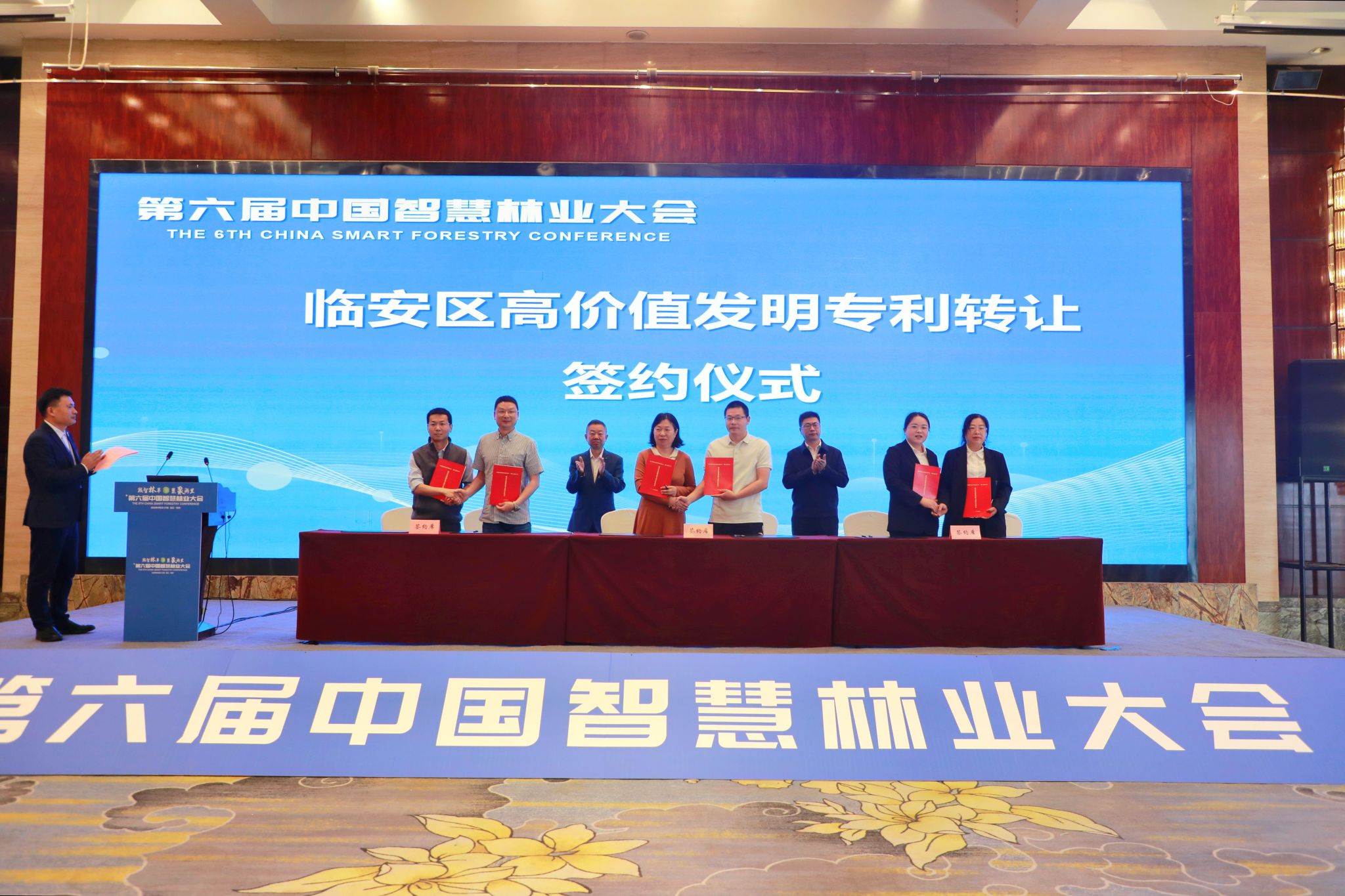 在臨安區市場監管局和浙江農林大學領導的共同見證下,農林大學科研團隊代表與3家企業代表完成高價值智慧林草發明專利轉讓簽約。