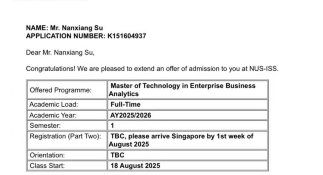 新加坡國立大學錄取通知書