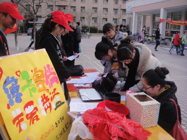為了感謝宿管阿姨們平日無微不至的照顧,感謝她們多年來堅守在崗位上無私的付出, 3月7日,志愿者們在東湖食堂門口倡議廣大師生在愛心賀卡上寫下自己對宿管阿姨的感謝和祝福,并將寫好的愛心賀卡投入愛心箱中。“感謝宿管阿姨每天早晚為我們開門,在寢室電器門窗等壞了的時候,及時地為我們報修……祝阿姨能心想事成,生活幸福快樂,婦女節快樂!”一張張愛心卡,承載的是同學們滿滿的祝福。