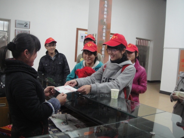 3月8日晚上,在對收集來的賀卡按寢室樓進行分類后,志愿者又擔當送信員,把1000多封大家寫好的賀卡送至各個宿管阿姨手中,并在寒冷的夜晚為阿姨們送上一杯熱茶。當宿管阿姨們收到來自同學們的愛心賀卡時,臉上都洋溢出了開心幸福的笑容。其中一位阿姨激動地說:“我很高興能接受到這么多同學的祝福,沒有想到這些‘大孩子’的心思會這么細膩……”