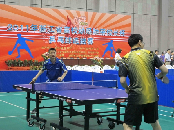 6月4日,由浙江省教育廳、浙江省教育工會、浙江省大學生體協乒羽分會主辦,嘉興學院承辦的第三屆浙江省高校“校長杯”乒乓球比賽在嘉興學院體育館隆重舉行。此次比賽受到了學校領導的高度重視,組成了由黨委書記宣勇,黨委副書記方偉,黨委委員、科技處處長陳永富為隊員,黨委委員、工會主席汪士華為領隊,張利老師為教練的代表隊。此次比賽取得了可喜的成績,宣勇榮獲男子單打亞軍,方偉榮獲男子單打第六名,宣勇、陳永富榮獲男子雙打第五名。