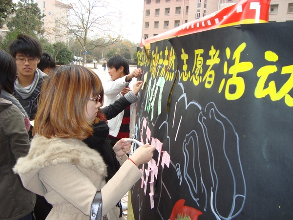 12月11日,由信息工程學院分團委組織的“防火于未燃”冬季防火宣傳志愿者活動在東湖食堂門口舉辦。由于11月份我國一些地區發生的火災釀成了不小的悲劇,此次活動引起了同學們更多的關注?;顒蝇F場展示了一些極其常見卻會給寢室生活帶來極大安全隱患的大功率電器,倡議同學們寫下承諾:不在寢室里使用熱得快、電熱水袋等存在安全隱患的電器。同學們絡繹不絕地來到現場,并在便簽紙上寫下自己的承諾,粘在活動展板上。一張張小小的便簽紙,猶如一片片葉子,在展板上組成了119,NO FIRE等字樣·····