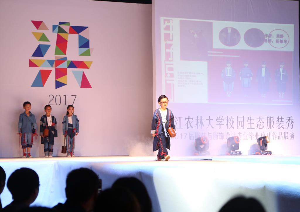 2017屆服裝與服飾設計專業42名畢業生,在歷經六個多月的設計制作后,為大家帶來都市成衣時尚系列、環保創意系列、民族文化傳承系列、童真趣味系列4個系列的130余套作品。燈光下,模特們身著的各式服裝閃耀著每個服裝設計師的五彩世界,驚艷在場的每一位觀眾。
