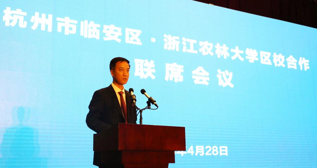 臨安區(qū)委書記盧春強指出,城市因大學(xué)而生,大學(xué)因城市而興。浙江農(nóng)林大學(xué)與臨安攜手走過60年發(fā)展歷程。今天的全面戰(zhàn)略合作拉開區(qū)校合作新序幕,必將對雙方進一步深化合作、實現(xiàn)共贏注入強大動力。他指出,深化區(qū)校合作,意義重大,需要我們厚植優(yōu)勢,乘勢而上。農(nóng)林大學(xué)對臨安的產(chǎn)業(yè)發(fā)展、科技創(chuàng)新、人才培養(yǎng)貢獻突出,已成為臨安不可或缺的智力庫、人才庫和創(chuàng)新源。當(dāng)前區(qū)校合作迎來眾多歷史性機遇,必將開啟新的征程。深化區(qū)校合作,前景廣闊,需要我們聚焦重點,精準(zhǔn)發(fā)力。區(qū)校發(fā)展戰(zhàn)略目標(biāo)一致,雙方可以在城市建設(shè)、產(chǎn)業(yè)發(fā)展、鄉(xiāng)村振興、人才引進等方面深化合作,取得更多成果。深化區(qū)校合作,使命光榮,需要我們強化保障,攜手共進。雙方要延續(xù)合作的好基礎(chǔ)、好經(jīng)驗、好做法,建立穩(wěn)定高效的合作機制,定期互通工作情況、交流工作成果,親密合作,和諧共建。