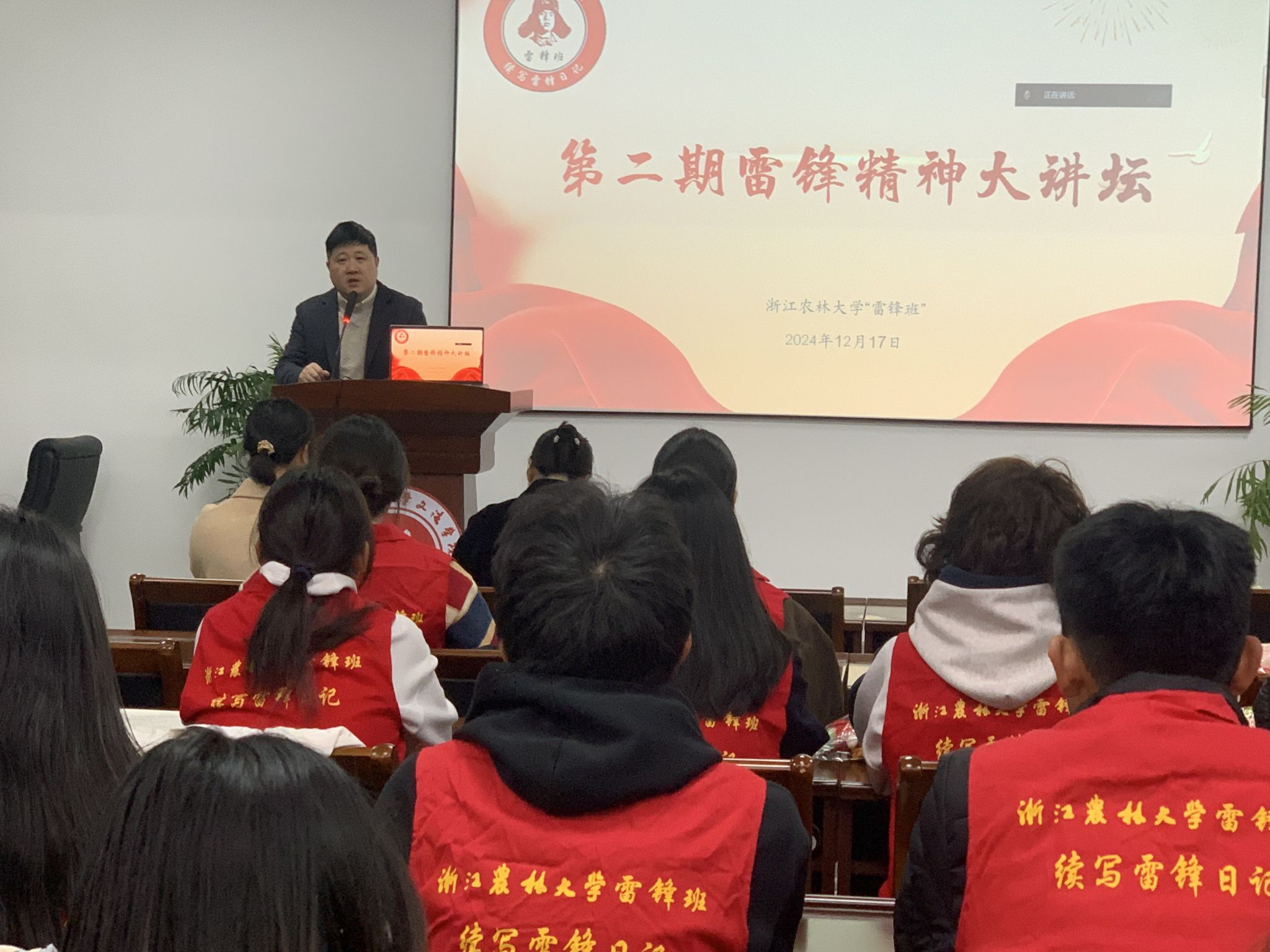 12月17日,浙江農(nóng)林大學(xué)“雷鋒班”邀請(qǐng)雷鋒生前所在部隊(duì)在實(shí)驗(yàn)大樓502開(kāi)展題為“感悟雷鋒精神真諦 筑牢立身做人根基”的第二期雷鋒精神大講壇。雷鋒班第27任班長(zhǎng)牟振華中士受邀主講,文法學(xué)院相關(guān)負(fù)責(zé)人、雷鋒班指導(dǎo)老師、浙江農(nóng)林大學(xué)“雷鋒班”全體成員、各黨支部黨員代表參加活動(dòng)。