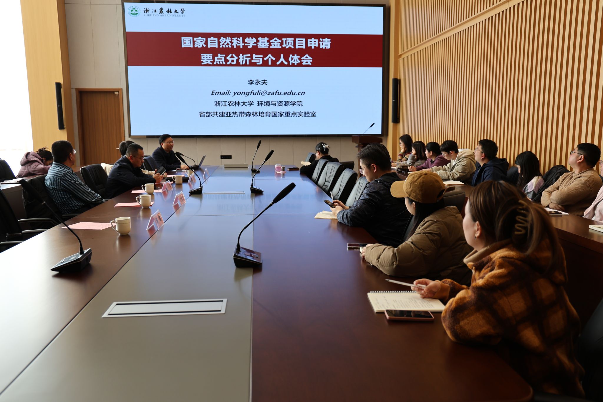 12月20日,林生院舉行2025年度國家自然科學基金申報輔導推進會,會議邀請了環境與資源學院李永夫教授做國自然基金項目申請經驗分享及申報輔導,科技處、林生院相關負責人及2025年度擬申請國家自然基金的老師參加會議。