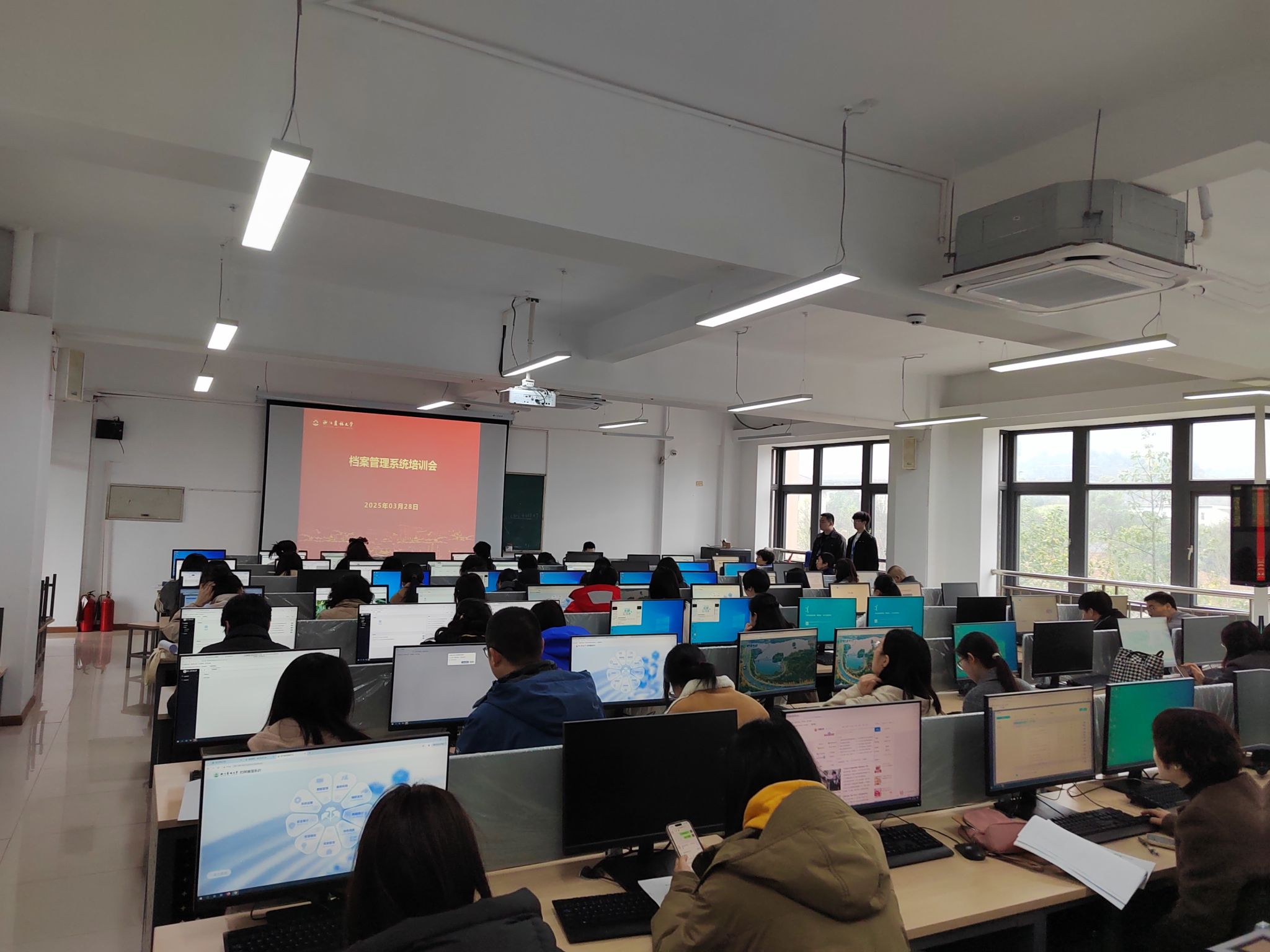 3月28日,2025年度全校兼職檔案員培訓會在學10-411召開,本次培訓的主題是新版檔案管理系統實踐操作。校辦相關負責人、全校60余名專兼職檔案員參加了本次培訓。