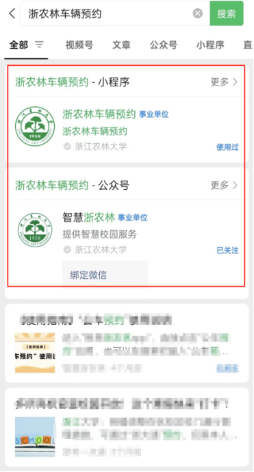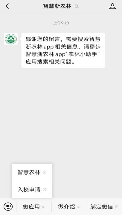 微信搜“浙農林車輛預約”;或公眾號搜“智慧浙農林”-微應用-入校申請。