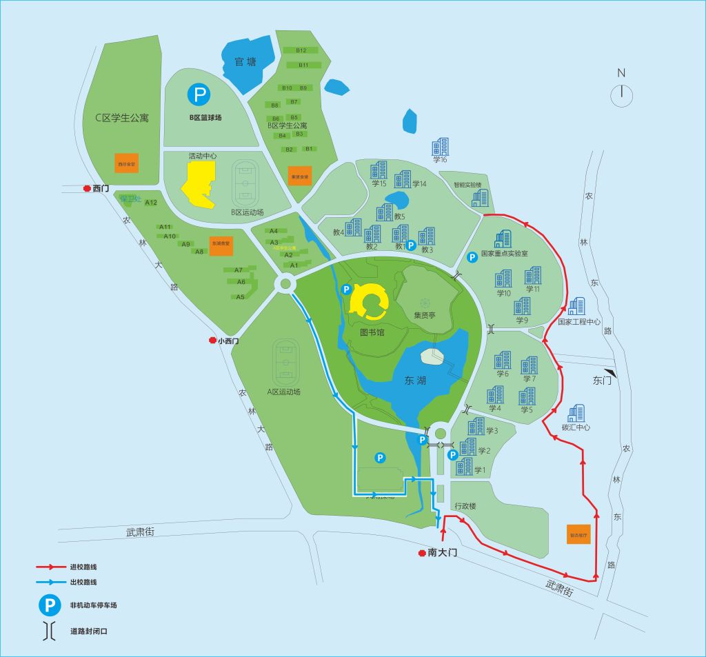2.進(jìn)出校園的車(chē)輛請(qǐng)從二環(huán)路、體育館側(cè)道路繞行,有序停放至各樓宇周邊停車(chē)場(chǎng);