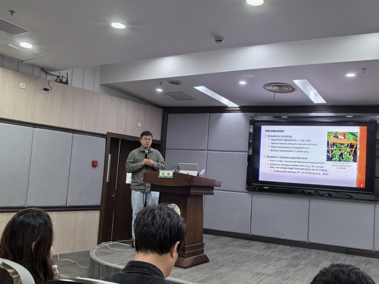 Mark Porter博士以“Gene Discovery and Genomic Prediction for improved Strawberry Flavor”為題,介紹了在草莓風味研究上的進展;Kaitlyn Vandracek博士以“Identifying the Genetic Mechanisms for Manipulation of Strawberry (Fragaria ×ananassa) Runner Production”為題,介紹了草莓匍匐莖產生的機制研究;沈鍇博士以“A Comparative Study of Precision 3D Reconstruction of Strawberry Plants for Non-Destructive Biomass Prediction”為題,介紹了通過3D影像精確測定草莓生物量的方法。