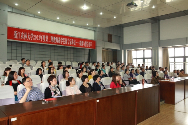 浙農林大新聞網訊 為貫徹《關于舉辦首屆全國高校微課教學比賽的通知》(教培函〔2012〕7號)、《浙江省教育廳辦公室關于組織參加首屆全國高校微課教學比賽的通知》(浙教電傳〔2013〕77號)的文件精神,我校于4月16日下午在學11301舉行了題為“微課與教學改革”的年度第二期教師教學發展專家講壇。本次活動由杭州師范大學現代教育技術中心主任茅育青教授擔任嘉賓,教務處負責人擔任主持,各學院(部)分管教學負責人、參與微課教學比賽的教師、第二期青年教師研修班教師、校級及以上精品課程負責人參加了活動。