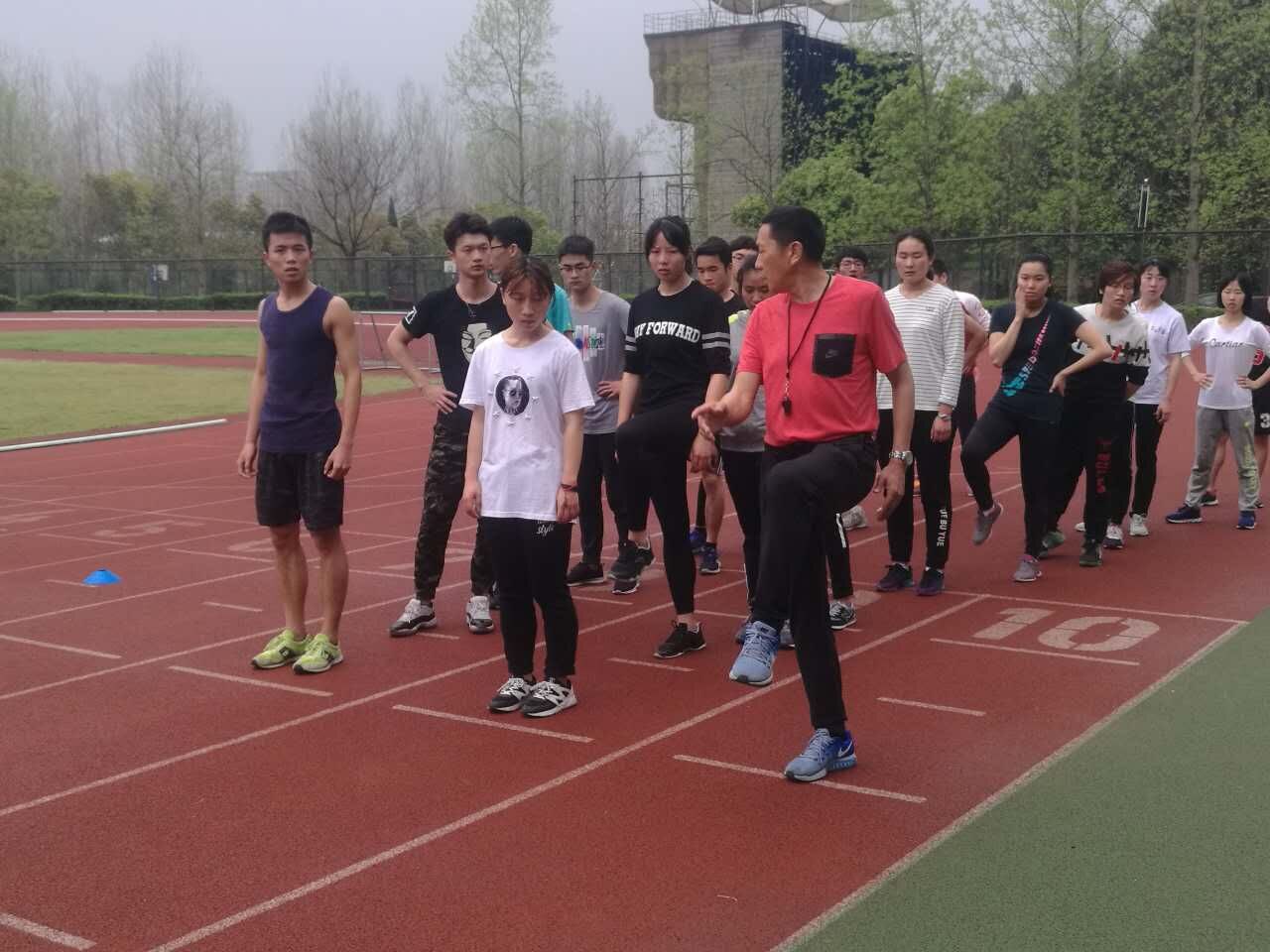 體軍部全體黨員和部分教工在A區田徑場集合觀摩,王加益介紹了本次觀摩課的內容和訓練方法,田徑隊員集合后進行了跑步的專項練習。訓練中王加益結合課程內容安排了多項練習,并結合不同的器械和輔助方法進行訓練,整個過程安排合理緊湊、效果良好。