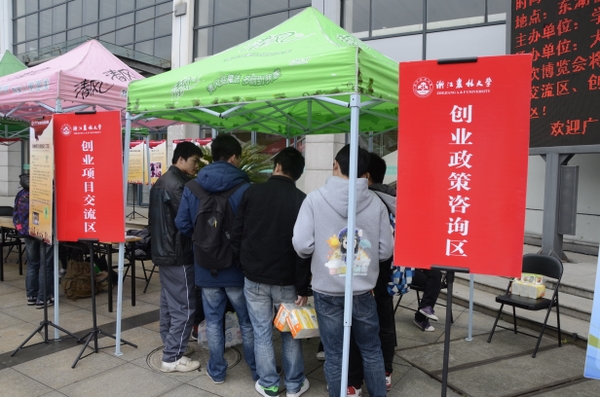 浙農林大新聞網訊 4月21日,由學生處就業指導服務中心主辦,大學生創業社承辦的第七屆大學生校園創業實踐博覽會在東湖校區活動中心廣場順利舉行。