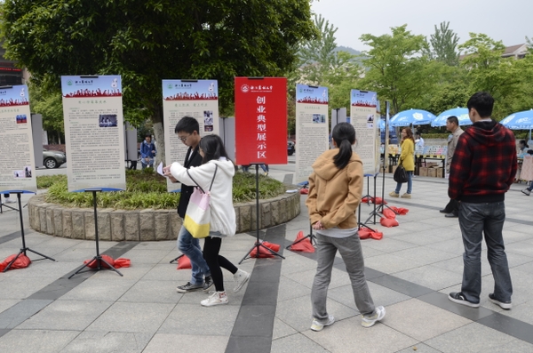 本次博覽會劃分為創業典型展示區、創業項目交流區、創業政策咨詢區、校內創業團隊交易區等四個區塊。其中創業典型展示區展示了臨安草木人茶文化策劃有限公司、杭州語萊農業科技有限公司、臨安成蹊農業科技開發有限公司等20支我校大學生創業團隊的創業歷程和成果。創業項目交流區展示了我校第六期大學生創業實驗園的22支入駐團隊的創業項目,引導有創業意愿的大學生積極投入到大學生創業實驗園的申報中來。創業政策咨詢區宣傳了國家、浙江省、杭州市及臨安市等出臺的一系列鼓勵大學生創業的相關政策,引導大學生利用創業政策指向標開展創業實踐活動。創業團隊交易區是創業團隊小試牛刀的場所,在此,創業團隊成員們可以鍛煉自己的營銷能力、溝通能力。