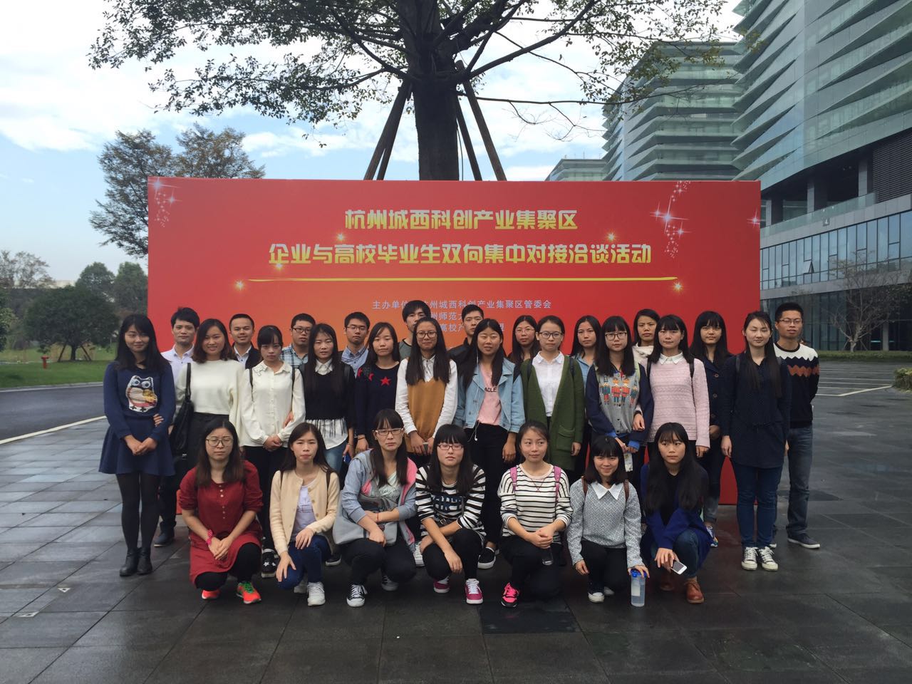 11月7日,城西科創區2015年企業與高校畢業生雙向對接洽談活動在杭州未來科技城舉行。本次活動由杭州城西科創產業集聚區管委會和浙江高校產學研聯盟杭州城西中心共同舉辦,包括浙江大學、浙江工業大學以及我校在內的10余所在杭高校組織師生參加了本次洽談活動。
