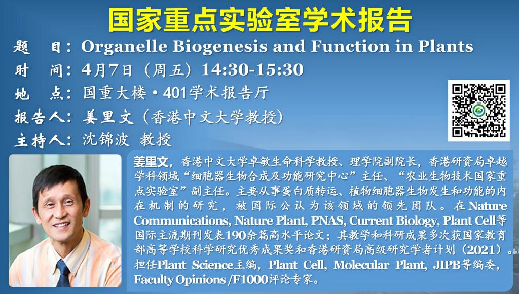 講座預告:Organelle Biogenesis and Function in Plants