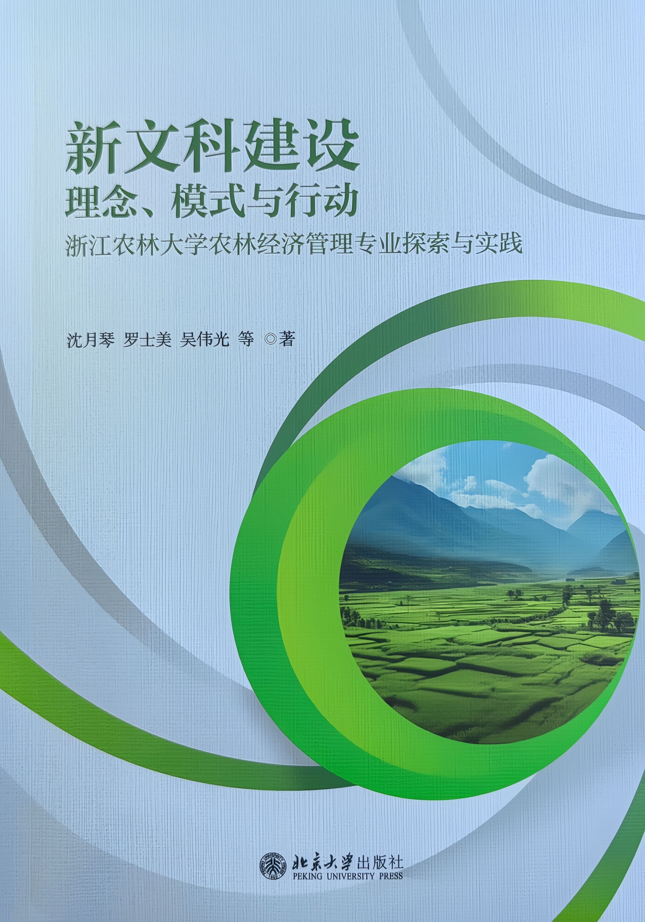 近日,浙江省鄉(xiāng)村振興研究院院長(zhǎng)沈月琴等合著的《新文科建設(shè)理念、模式與行動(dòng)——浙江農(nóng)林大學(xué)農(nóng)林經(jīng)濟(jì)管理專業(yè)探索與實(shí)踐》由北京大學(xué)出版社出版。該書是我校主持的教育部首批新文科研究與改革實(shí)踐項(xiàng)目“農(nóng)林經(jīng)濟(jì)管理推進(jìn)新文科建設(shè)研究與實(shí)踐”(編號(hào):2021140070)的研究成果。全書共為六章,22.5萬字,系統(tǒng)梳理、總結(jié)了多年來浙江農(nóng)林大學(xué)農(nóng)林經(jīng)濟(jì)管理專業(yè)的改革與實(shí)踐經(jīng)驗(yàn),是我校新文科建設(shè)的最新成果,也是我校浙江省鄉(xiāng)村振興研究院與經(jīng)濟(jì)管理學(xué)院通力合作,實(shí)現(xiàn)科教融匯的典范之作。