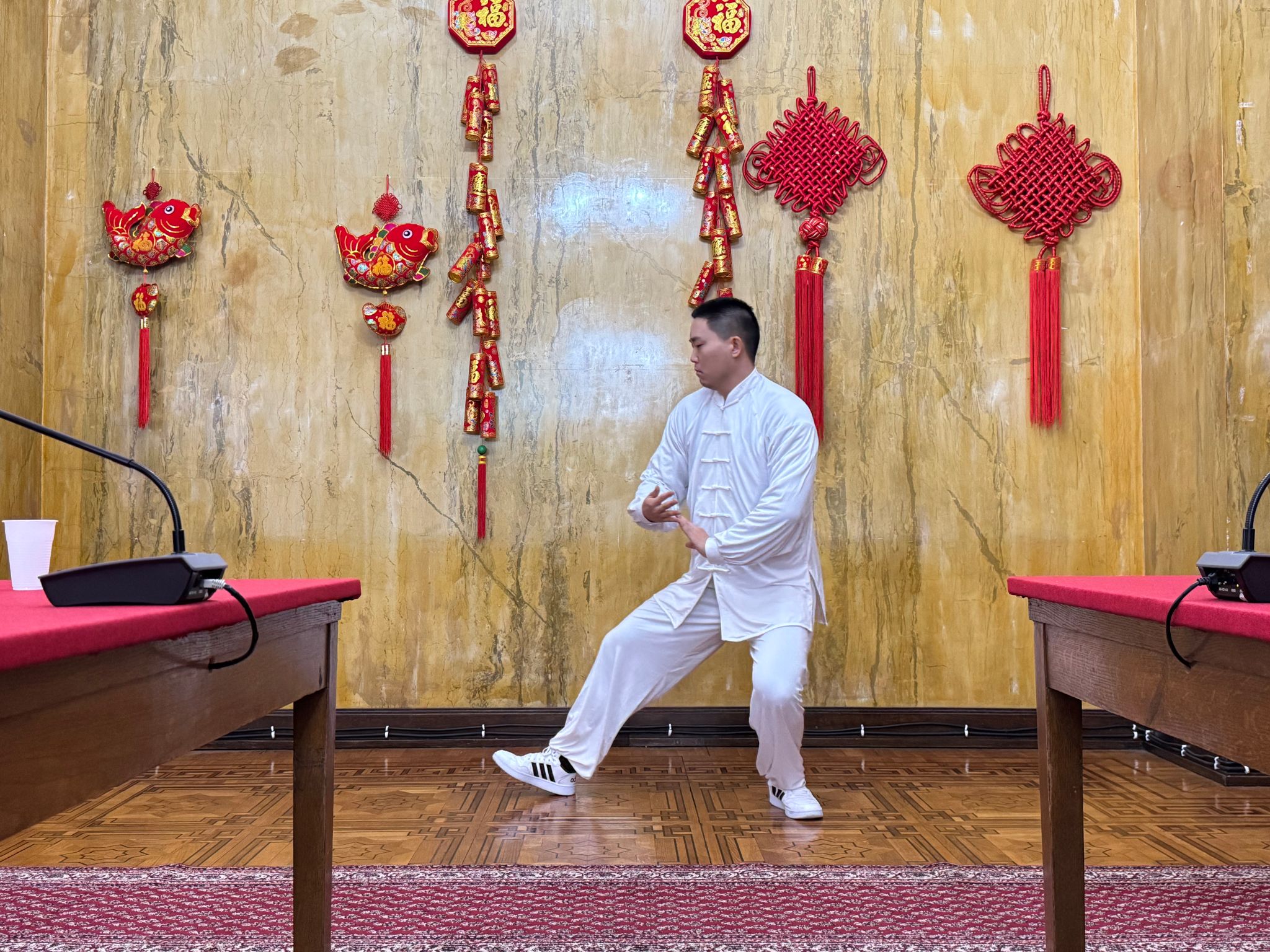 諾大孔院教師為此次春節(jié)活動(dòng)帶來(lái)了精彩節(jié)目。豪邁奔放的藏族舞蹈《拉崗踏歌》傳遞出了濃郁的民族風(fēng)情,驚艷眾人;太極拳表演那剛?cè)岵?jì)的一招一式,盡顯中華武術(shù)數(shù)千年傳承的精髓;塞語(yǔ)歌曲《雪花》那熟悉的旋律和飽含感情的演唱,為節(jié)目增添別樣風(fēng)采。諾大孔院教師的精彩表演讓在場(chǎng)嘉賓領(lǐng)略到中華文化的魅力,贏得了現(xiàn)場(chǎng)來(lái)賓們的陣陣掌聲和不絕于耳的贊揚(yáng)。活動(dòng)現(xiàn)場(chǎng)洋溢著歡樂(lè)喜慶的節(jié)日氛圍。