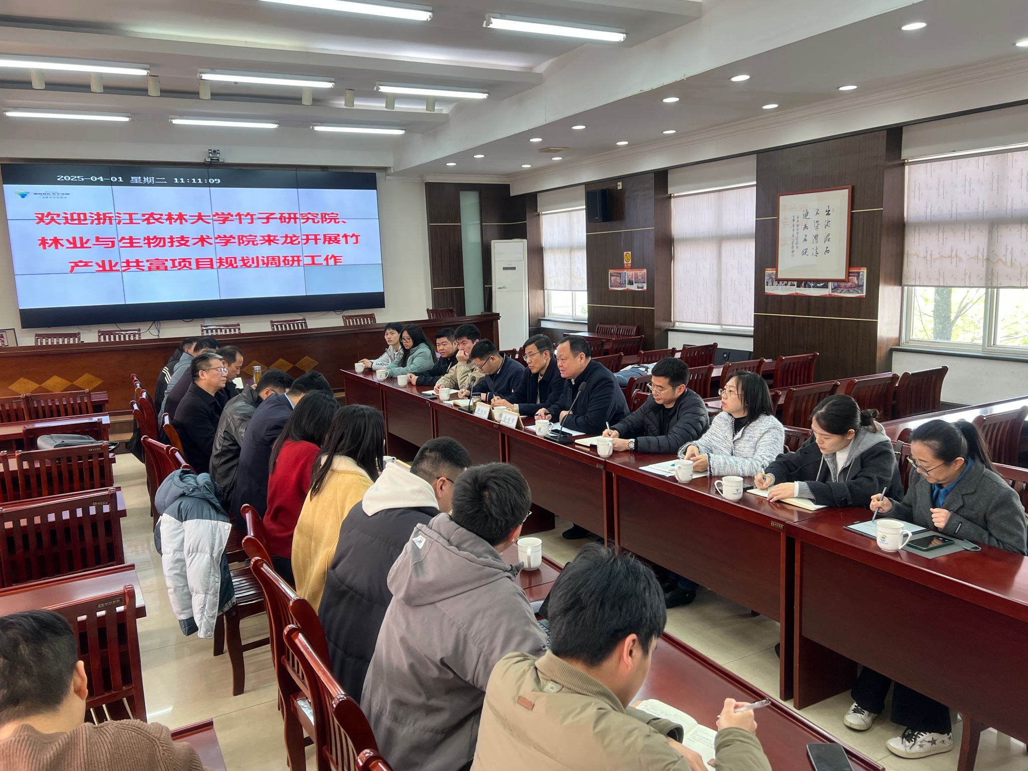 4月1日,林生院黨委書(shū)記鄭炳松,竹研院相關(guān)負(fù)責(zé)人帶隊(duì)赴龍游縣林業(yè)水利局開(kāi)展產(chǎn)業(yè)共富項(xiàng)目調(diào)研交流,龍游縣林水局黨組書(shū)記胡偉光、龍游縣林水局副局長(zhǎng)趙鵬、龍游縣人大副主任祝立宏等參與調(diào)研和交流。