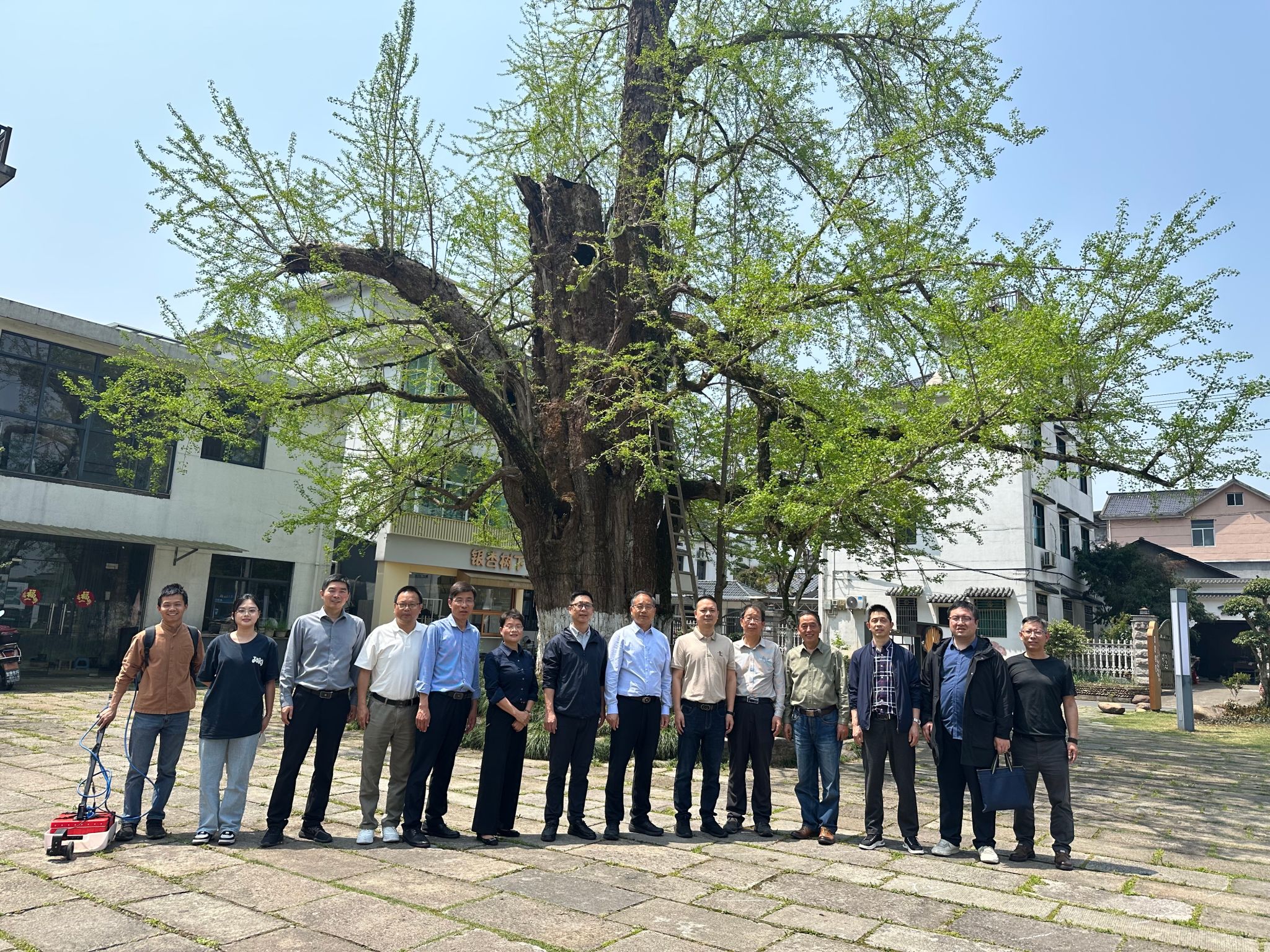 4月10日,浙江省古樹名木保護基金會理事長、浙江農林大學古樹名木保護研究院院長胡祖吉與林生院黨委書記鄭炳松一行,赴開化縣召開金星村銀杏古樹搶救性保護方案討論會。學校一行會同省林業局、開化縣林業局、華埠鎮政府等,共同為這棵承載著深厚歷史與文化意義的古樹救護出謀劃策。