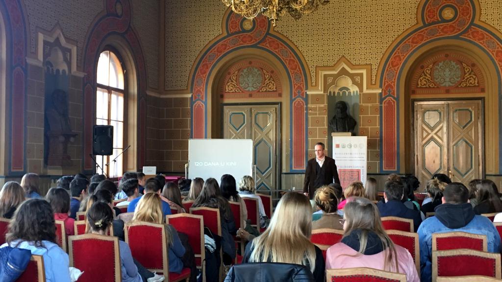 當地時間2月28日至3月3日,諾維薩德大學孔子學院先后在其下設的卡爾洛芙茲語言高中(Karlovci Grammar School)孔子課堂、約翰·奈斯比特大學(John Naisbitt University)和諾大哲學院等地舉辦了孔子學院項目介紹會和學生赴華留學體驗分享會。