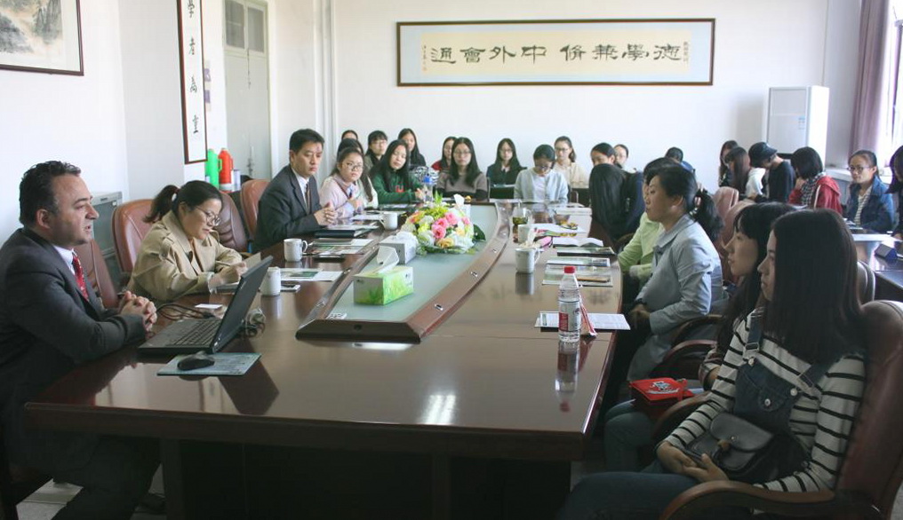 10月24日上午,美國南卡羅萊納大學(上州分校)國際研究中心主任Alexander N.Akulli來校訪問交流,宣講國際交流生項目并洽談合作事宜。外國語學院相關負責人、英語專業負責人接待來訪客人,外語專業部分學生參加項目宣講會。
