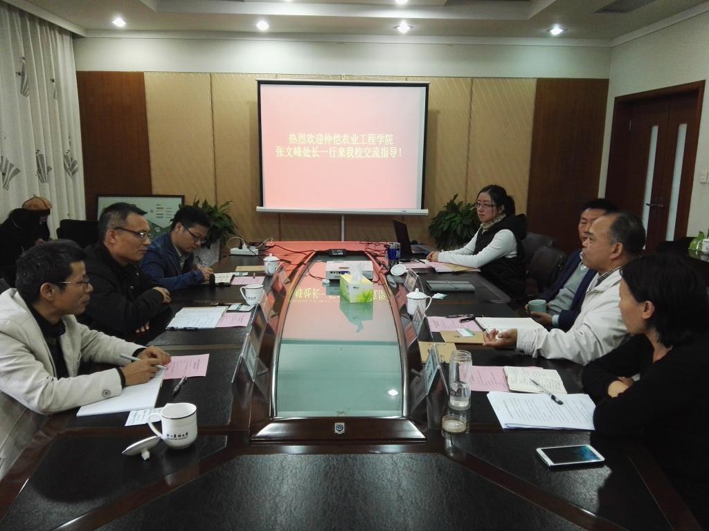 11月20日,仲愷農業工程學院發展規劃處處長、學科建設辦公室主任張文峰一行來校研討交流學科建設與規劃管理工作。學科辦主任黃堅欽、戰略處處長侯平參加座談。