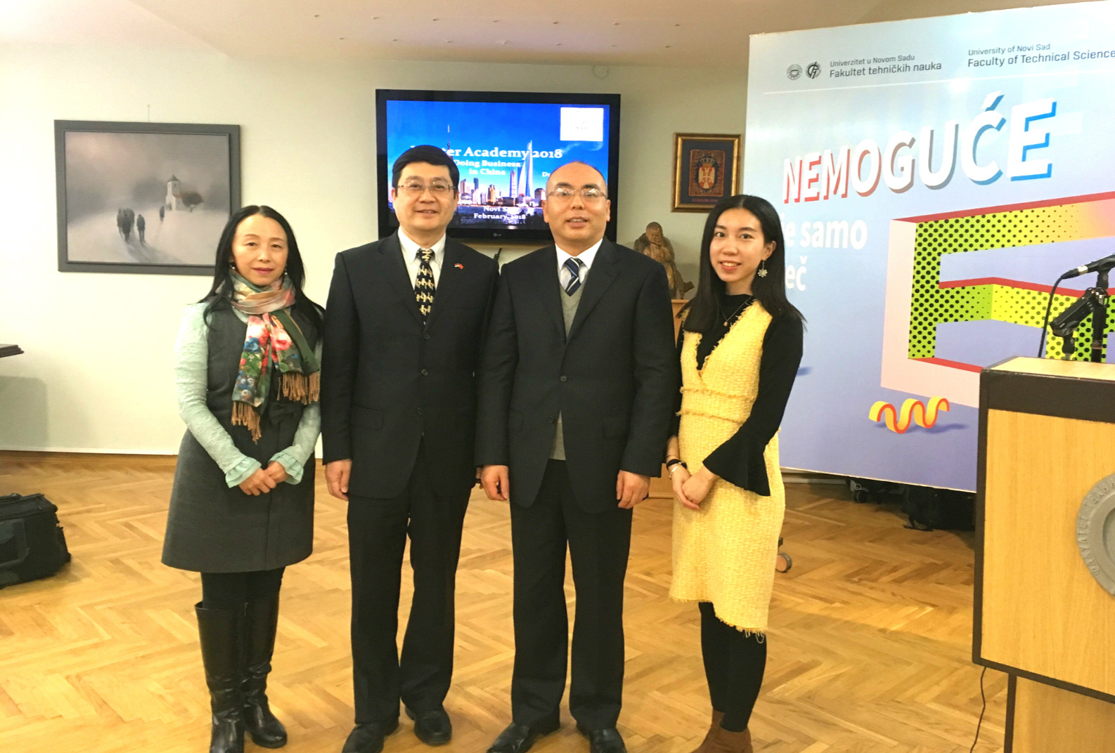 會議期間 “一帶一路”研究院負責人尼古拉·茲武拉克(Nikola Zivlak)博士作了“在中國做貿易”的主題演講,從近年來中國的變革、中塞友好合作等方面展開。特別贊揚了諾大孔院為去年9月“16+1”第五屆中國—中東歐國家教育政策對話會議在諾大的成功舉辦所付出的辛勤工作,感謝諾大孔院參與設計 “一帶一路”研究院的院標(logo)。