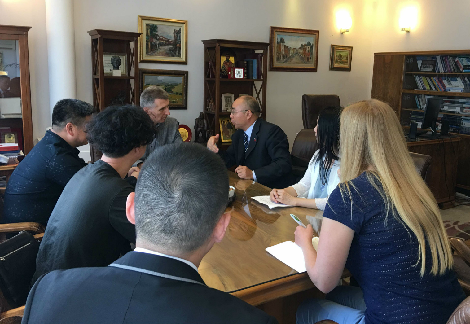 當(dāng)?shù)貢r(shí)間5月29日,諾維薩德大學(xué)孔子學(xué)院中方院長陳晦一行,就深化院地合作,加快漢語教學(xué)點(diǎn)建設(shè),前往蘇博蒂察市考察并洽談,與蘇博蒂察市市長波格丹·拉班(Bogdan Laban)、諾大經(jīng)濟(jì)學(xué)院副院長湯姆斯拉夫·蘇達(dá)萊維奇(Tomislav Sudarevic)等進(jìn)行溝通對接,蘇博蒂察市電視臺(tái)進(jìn)行了專題采訪。