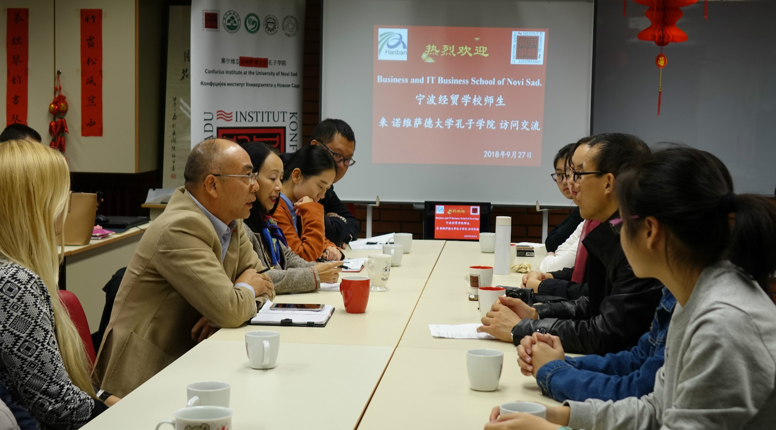 當?shù)貢r間9月28日,中國寧波經(jīng)貿(mào)學校和塞爾維亞諾維薩德商業(yè)信息技術(shù)學校(Business& IT Srednje Skole)的師生一起,共同訪問諾大孔院,30余人參加了座談。