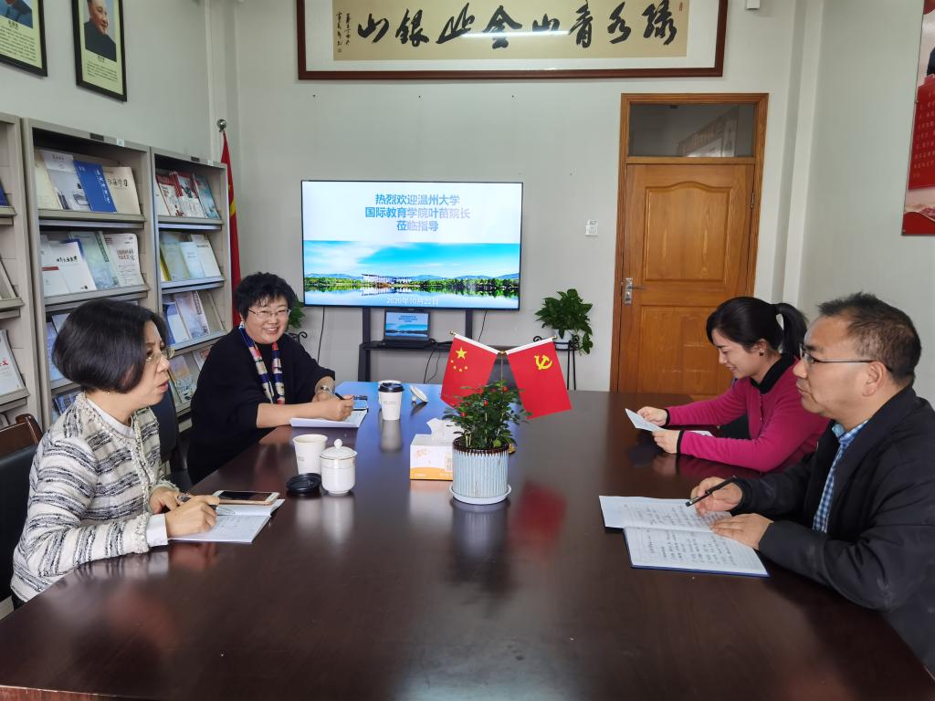 10月22日上午,溫州大學國際教育學院院長葉苗一行來校調研交流,國際教育學院院長趙有華等相關負責人參加了座談交流。