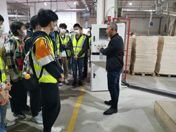 師生還參觀了流水線,對原木切割,打磨涂裝,零件拼裝,噴涂打印,包裝運輸等多個玩具生產環節進行了展示和講解。