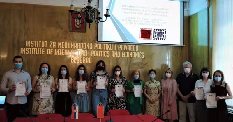 當(dāng)?shù)貢r(shí)間7月2日,我校合作共建的諾維薩德大學(xué)孔子學(xué)院與塞爾維亞國(guó)際政治經(jīng)濟(jì)研究院(Institute of International Politics and Economics of Serbia)合作開(kāi)設(shè)的基礎(chǔ)漢語(yǔ)A1班在該院舉行了結(jié)課儀式。該院院長(zhǎng)布拉尼斯拉夫·喬爾杰維奇(Branislav Dordevic)和孔子學(xué)院中方院長(zhǎng)陳晦(通過(guò)視頻)出席典禮并分別致辭。